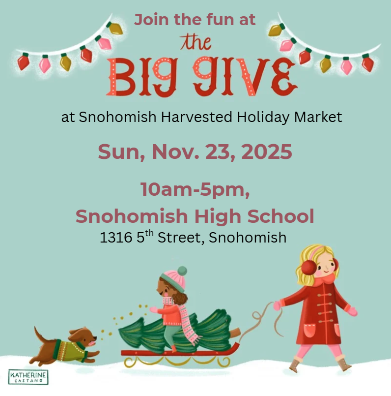 The Snohomish Harvested Holiday Market is thrilled to welcome the Snohomish Chamber of Commerce’s Big Give as part of this year’s celebration!